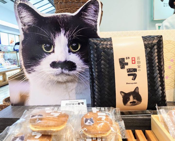 沖さんが撮影したチョビヒゲ黒猫が店番をしているみたい! 新店舗のオープンとともに新たに登場したのが、松屋浅草店限定「喜田家のドラ」。火曜を除き、毎日販売されています。