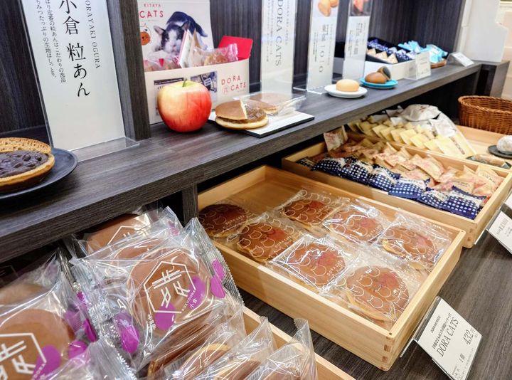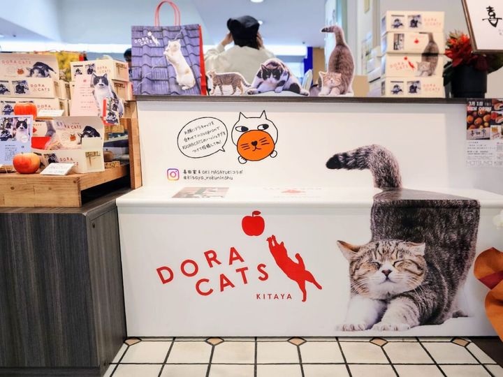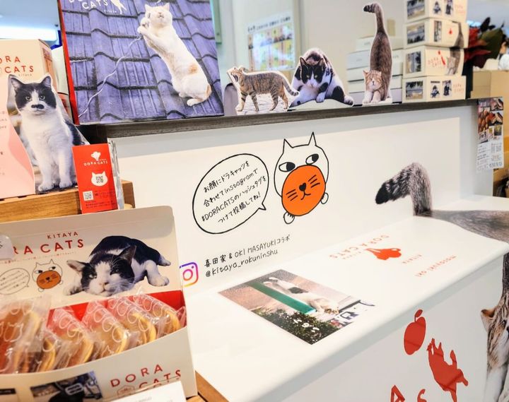 松屋浅草店では、2023年冬から販売している喜田家の人気商品「六どらりんご」と猫写真家・沖昌之さんとコラボした「DORACATS(ドラキャッツ)」も販売しています。