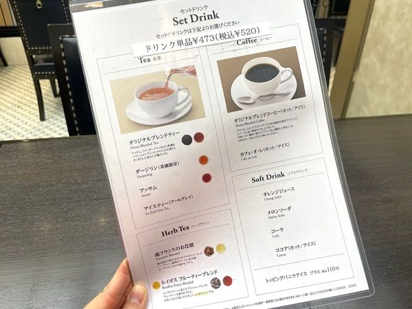 ちなみにコージーコーナーでは朝の時間帯はお得にドリンクを飲めるのもポイント。「モーニングドリンク」として通常520円のところを360円で注文することもできます。コーヒーや紅茶、ハーブティー、ソフトドリンクなど種類も豊富ですよ。