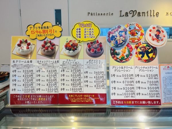 デコレーションケーキを予約する場合、アプリから予約注文すると5%オフになるという特典もあるので、予約の際はアプリからがお得ですよ!