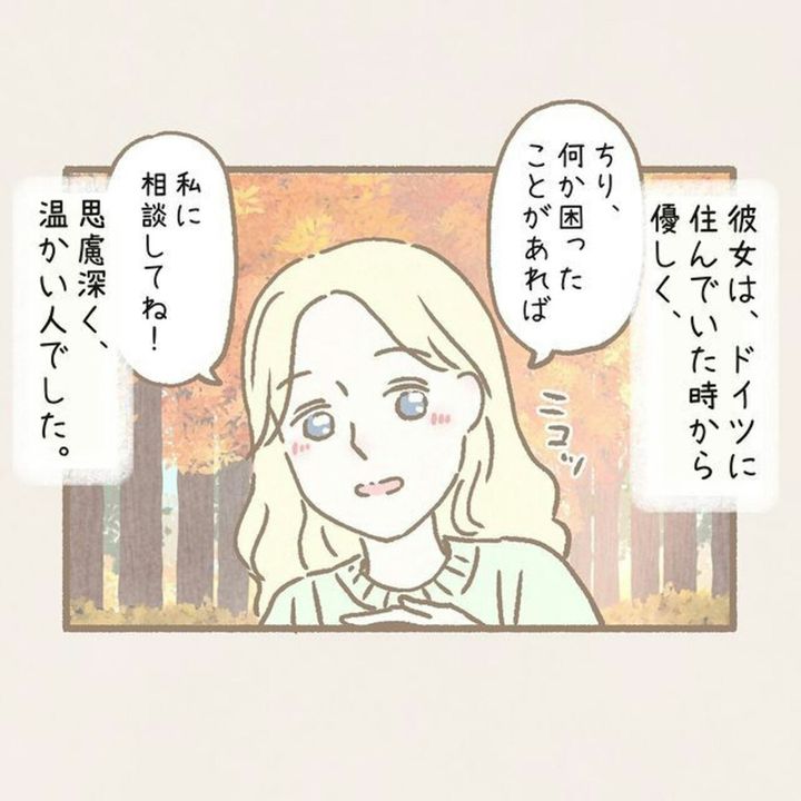 大好きな兄の死に深く傷つき、胸が苦しい日々を送っていたちりめんさん。この漫画では、ドイツの友人とのやり取りから生まれた、心がじんわりと温まるできごとが描かれます。