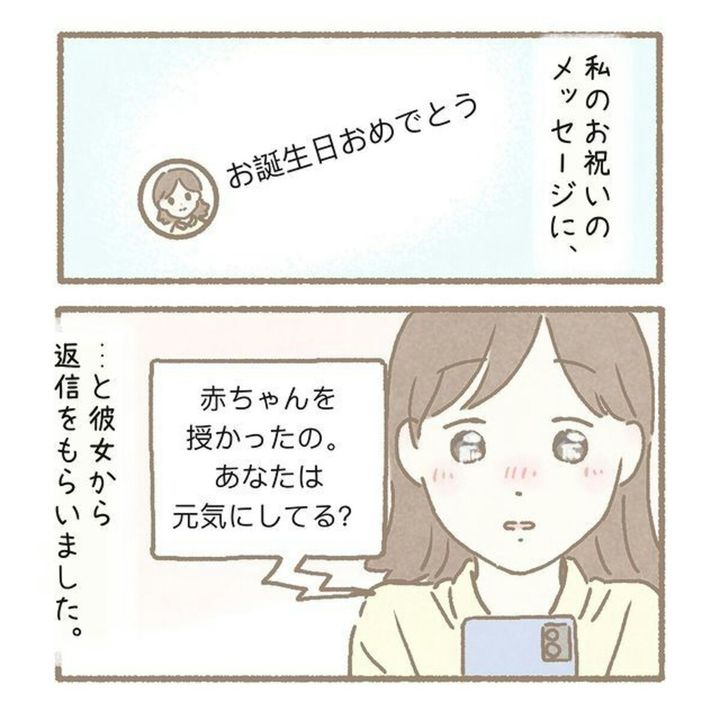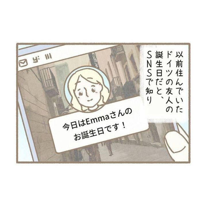 SNSでドイツの友人・エマさんの誕生日だと知ったちりめんさんはメッセージを送りました。日本が好きなエマさんは優しい人柄で、ちりめんさんが日本に帰ってからも付き合いは続いていたようです。エマさんから返ってきたメッセージには、「赤ちゃんを授かった」との報告が!