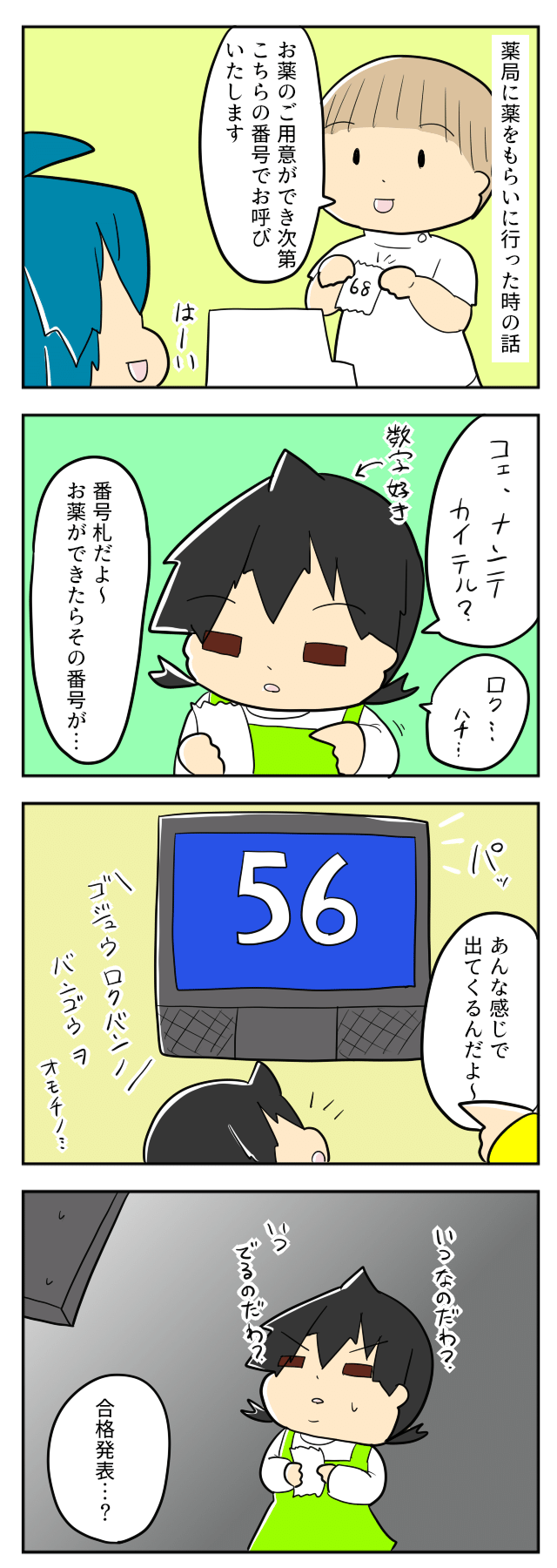 番号札を握りしめドキドキ、ソワソワ・・。薬局で薬を待つ娘が合格発表を待つ受験生に見えた