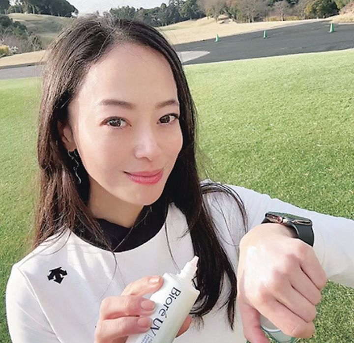 ゴルフは日焼けとシミとの闘い。この1年半でそれを痛感した岡崎さん。「去年は焼けてしまったので、強力にUVブロックをしつつ、カラーコントロール効果のあるものや、ツヤが出るものが早急にほしいです!」