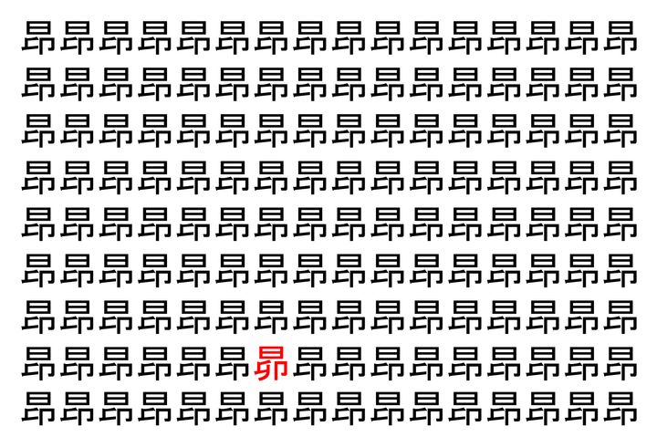 【脳トレ】「昂」の中に紛れて1つ違う文字がある!?あなたは何秒で探し出せるかな??【違う文字を探せ!】