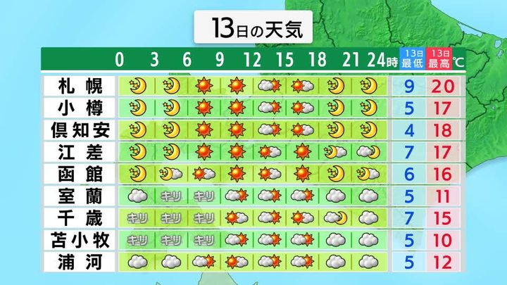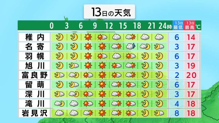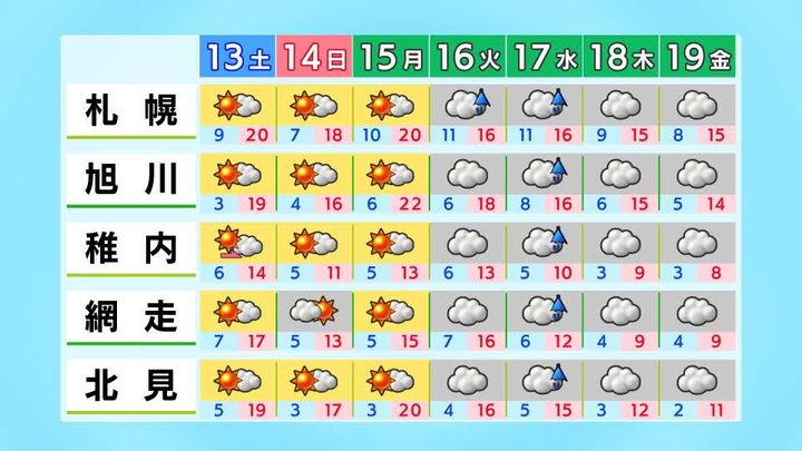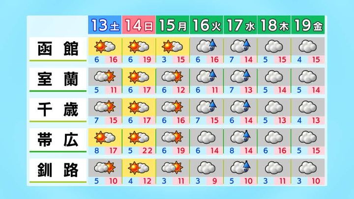 3. 【広く晴れて春の日ざしに】北海道の週間天気予報・4月13日(土)から