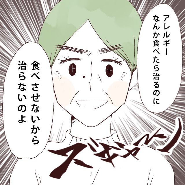 すると義母が「アレルギーなんか食べたら治る。食べさせないから治らないのよ!」と自信満々に言い切りました。