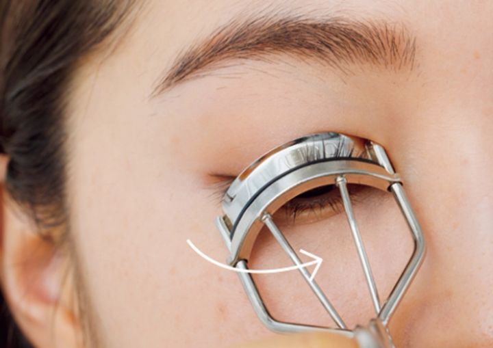 目頭側をしっかりカールすることで、目尻が下がって甘い丸目になりすぎない。