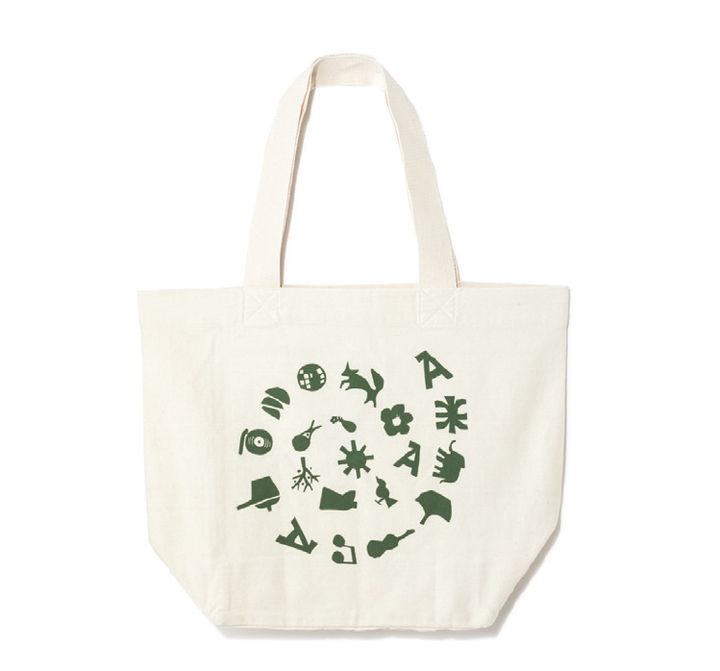 京都のモチーフがモダンに描かれたトートバッグは、京都土産にも。ハンドルが長めで肩がけしやすく、大容量で使いやすさも文句なし。再生コットン100%で環境にも配慮。W53×H43×マチ13cm¥8,195(エースホテル京都 TEL:075・229・9000)