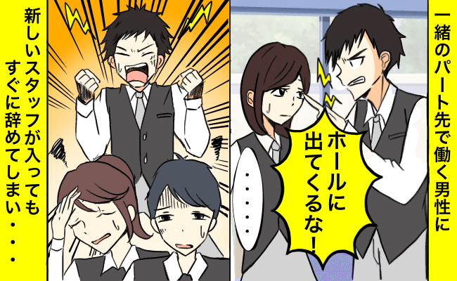 私の仕事の仕方も男性からは「違っている」と思われたことで、シフトが重なっても「洗い場にいろ。ホールに出てくるな」と、あり得ない指示を出されました。