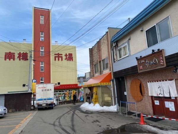 本日の行列は6人待ち。寒さも和らいできたので、並ぶには良き日!と。駐車場は、店の前にある南樽市場駐車場を利用できます。無料です。