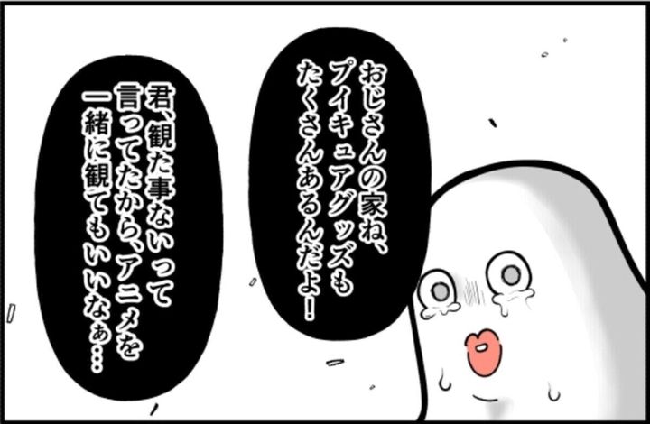 当時、小学生だった ほや助さんは、バドミントンの習い事に行くため、自宅から徒歩10分ほどの体育館へ1人で向かっていました。すると、ほや助さんのそばで車が停車し、運転席から見知らぬ男性が降りてきたのです。にこやかに「こんにちは」と話しかけられ、次に子ども向けアニメの話題を振られます。