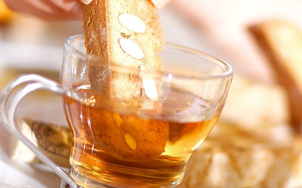 甘いビスコッティを、エスプレッソや濃いコーヒーに浸すのが定番の食べ方。ほかにも甘いデザートワインに浸したり、ジェラートに添えたりします。