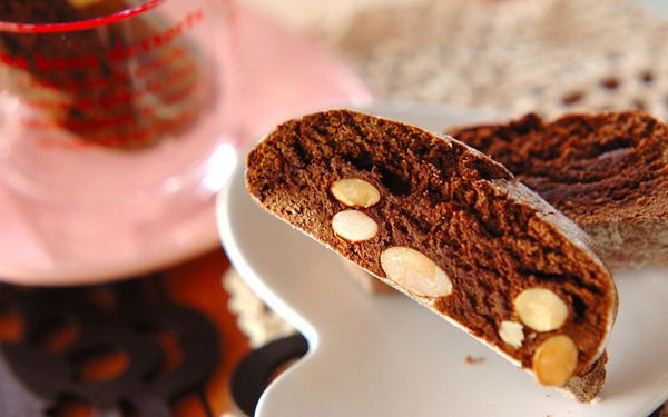 ミルクチョコレートやココアパウダー入りの大人向けビスコッティです。砂糖が控えめなので、甘いのが苦手な方にもおすすめ。生地を混ぜたら常温で発酵させてから焼きましょう。コーヒーはもちろん、紅茶にも合うでぜひ試してみてくださいね。