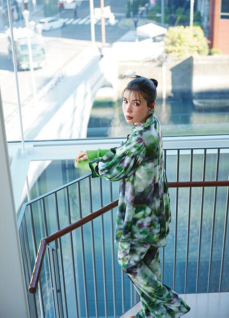 鮮やかなグリーンの衣装で登場した仲里依紗さん。今回の衣装のポイントを伺うと「もちろん“スイセン”を意識しました」とのお答えが。