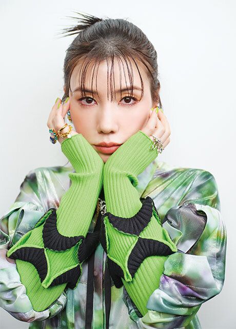 「ポイントはこのアームカバーかな。ちょっと植物っぽくて気に入ってます。髪にもうっすらグリーンのレイヤーをいれてるんです。劇中では過去と現在で激変するスイセンの服装にも注目して欲しいです。ファッションにも彼女のキャラクターや想いが反映されていますし、私も洋服が大好きだから親近感を覚えました」