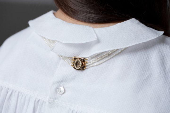 “Lover's Eye”と呼ばれる「瞳」の肖像画が留め具にあしらわれた、4連のパールネックレス。18世紀の品。