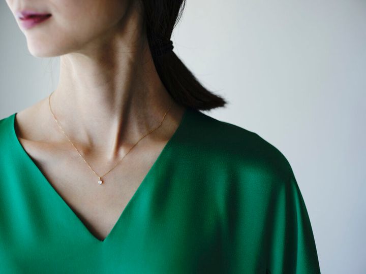 18〜19世紀に研磨されたダイヤモンドを使った『tinycrown』のオリジナルペンダント。ひとつひとつ形が違う歪なダイヤモンドに味わいがある。photo&clothing : SAQUI