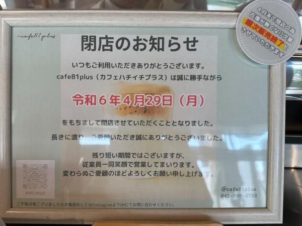 3. 【閉店】花小金井のおしゃれな「cafe81+(カフェ ハチイチプラス)」が4/29閉店