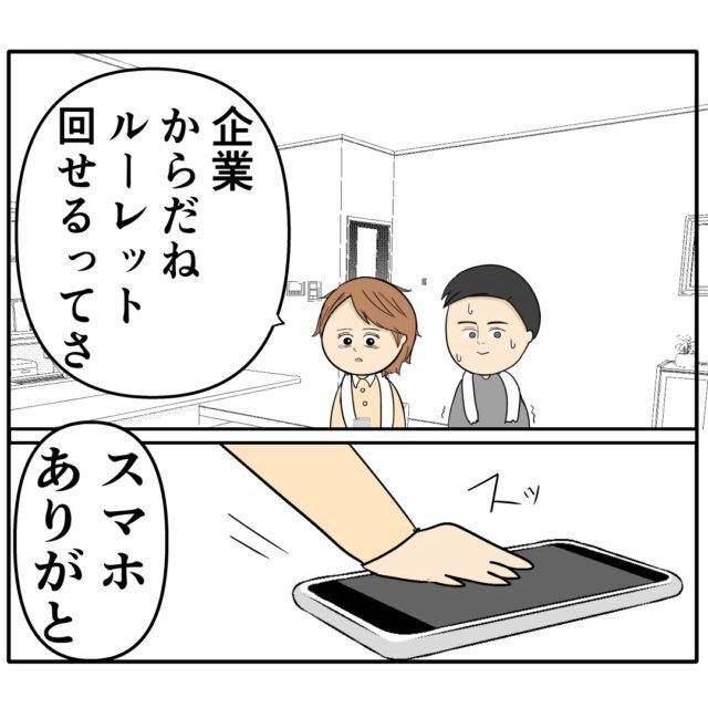「企業からだね。ルーレット回せるってさ。スマホありがと」