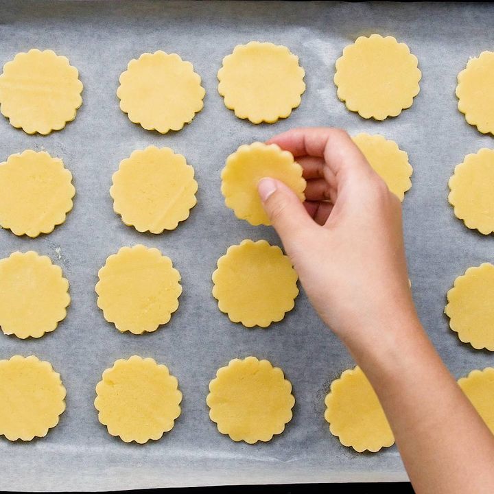 4: ③をクッキー型でくり抜き、クッキングシートを敷いた天板に隙間を開けて並べます。