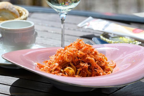 春におすすめのメニューは「桜海老のクリームパスタセット」。生パスタに海老の出汁をきかせたトマトクリームあわせ、駿河湾産の桜海老をふんだんに盛り付けた、目からも舌からも満喫できる一品ですよ。