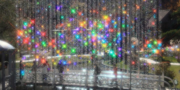 こちらでは、季節の花々をガラスで表現する特別なインスタレーションを庭園内に展示しており、2024年春〜初夏にかけては「クリスタルガラス 藤の花〜グリチネ〜」が誕生しています。400房・約4万粒のクリスタルガラスでできた藤の花壇は、木漏れ日を浴びてファンタジックに光をまといます。初夏の強い日差しのなかでも爽やかさを感じられるインスタレーションとなっていますよ♡