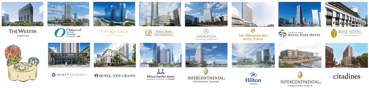 「ガーデンネックレス横浜 2024」開催期間中、昨年より新たに3つのホテルが加わり、合計15のホテルと連携したアフタヌーンティーやスイーツ、ドリンクなどが登場します!