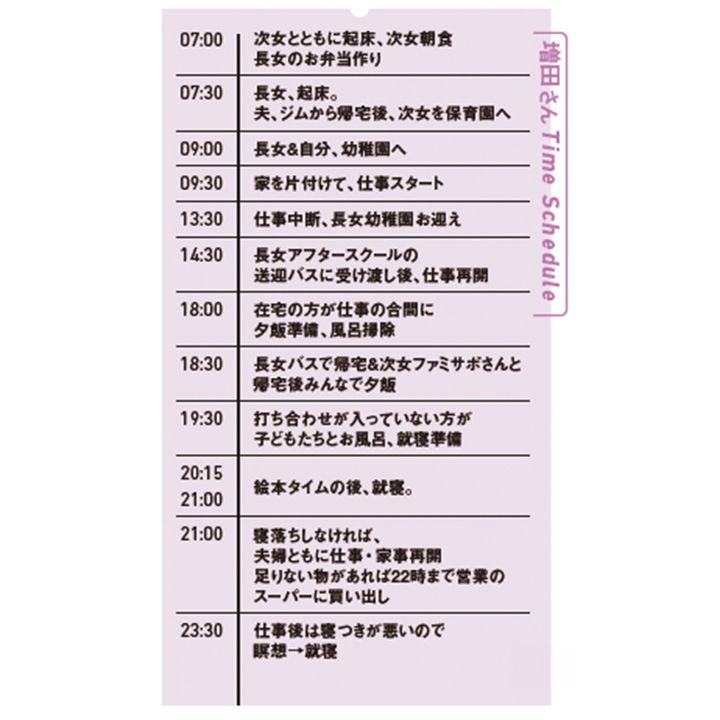 増田 私は、下の子はデイサポさんにお迎えを頼んでいてその間仕事だったり夕飯の準備とかができるから頼んでみて正解だった。制度をうまく活用して信頼するシッターさんを何人か見つけておくと安心だよね。
