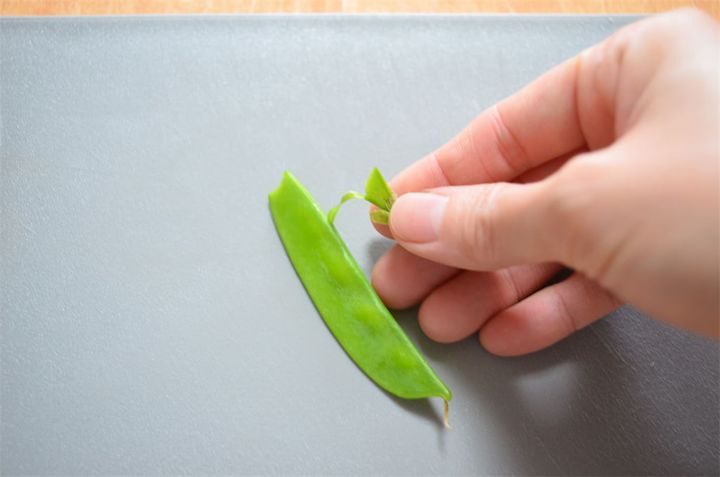 頭の部分をポキッと内側に倒して下に引っ張ると、スーっと筋が取れます。