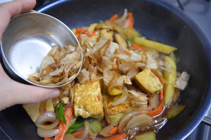 6.仕上げに花かつおを入れて、ひと混ぜする。