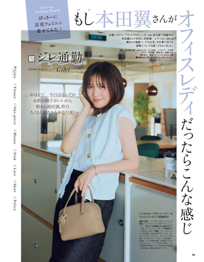 女優にモデル、ブランドプロデューサーetc.多方面で活躍中の本田翼さんが美人百花に初登場! お仕事レディに扮して、フェミニンな通勤コーデを着てもらいました。