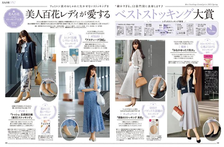 きちんと感を高めてくれるだけでなく、美脚見えや補整効果などいいことずくめのストッキング。数ある種類の中から、機能性やはき心地などの12部門別に読者の〝推しストッキング〟を決定!