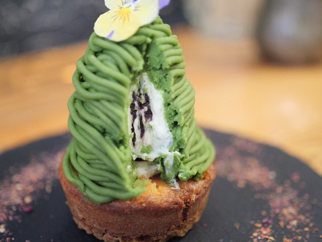 中央に仕込んである生クリームとつぶあんがマッチしていて、ちょっとほろ苦な抹茶にとても合うんでございますことよ。これはぜひ召し上がっていただきたい!!! (もちろんテイクアウトもできるのでご心配なくね)