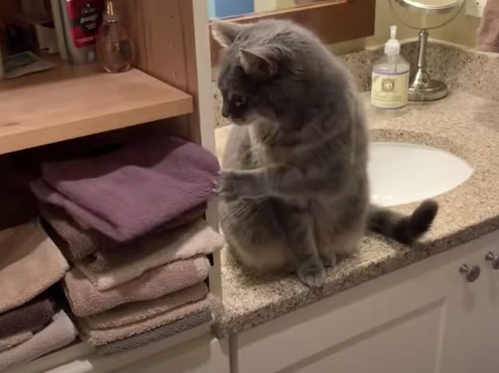 これ楽しい〜♪ 猫、困った遊びに夢中になる。