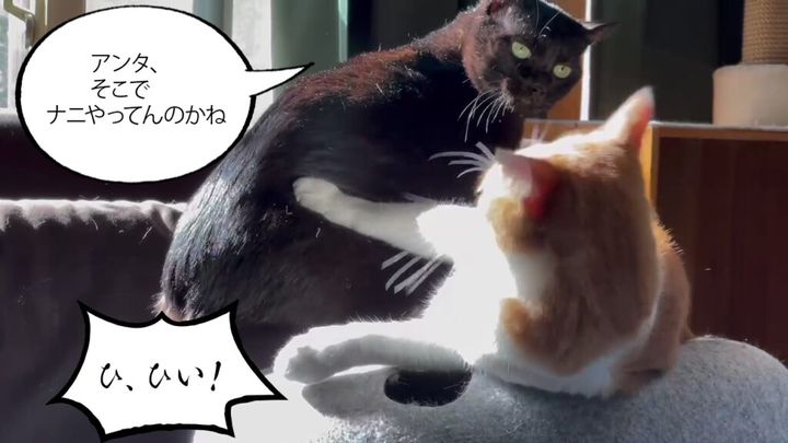 しっぽがシュルッ。お尻の間に隠れてしまっているみたい。頭ではちゃんとしよう、頑張ろうと思っていても、体は正直で、怖いし、つらいし、イヤなのです。こんな時は、焦ってはダメ。納得がいくまで物陰から観察して、「イケそう」と思ったら、少しずつ近づいていくのが正解。家庭内野良猫風に、存在を消してみて。