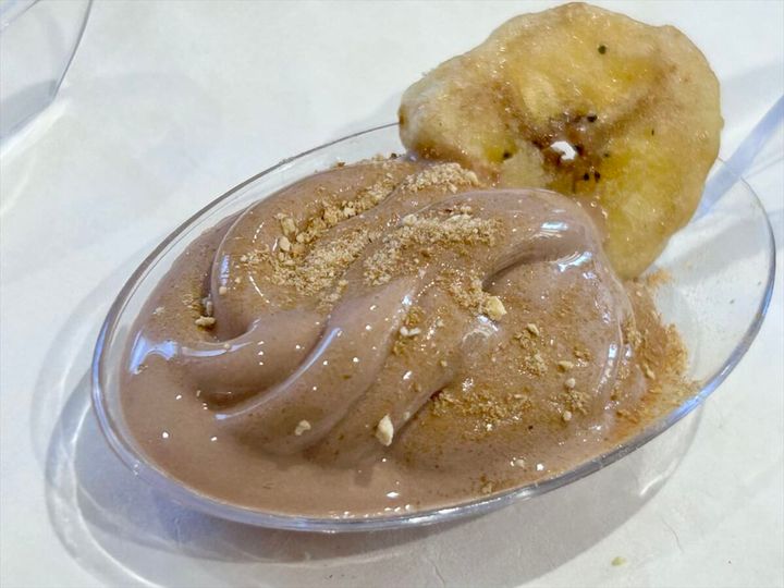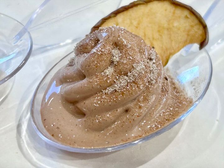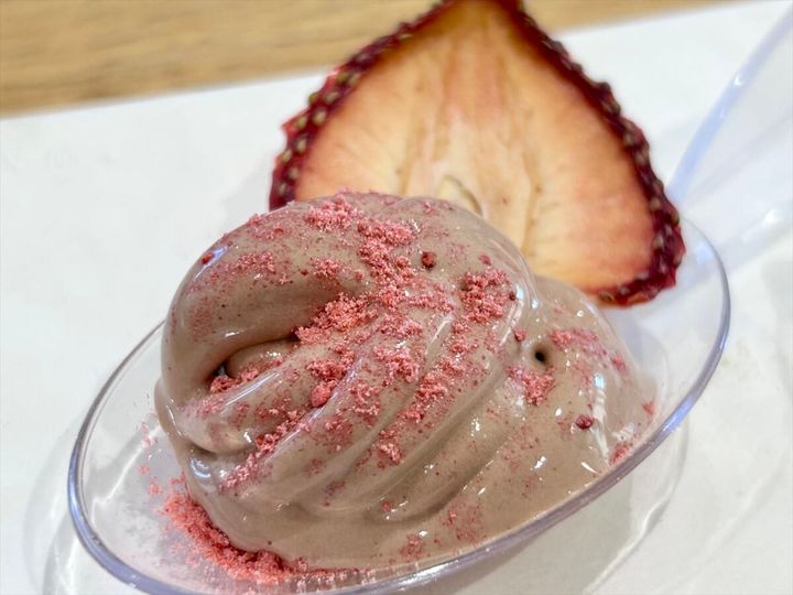 「春」のフレーバーは、「いちご・ミルク」。チョコレートと苺という、王道の組み合わせです。濃厚なチョコレートのソフトクリームに、苺の甘酸っぱさがプラスされ、バランスのよいおいしさ。