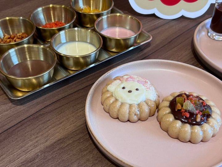 薬菓、チョコソース、トッピング、アクセントパウダーの4つの素材を用いて、オリジナルの薬菓をつくることができる体験「デコガーナ meets 薬菓!」。可愛くデコレーションしたり、好きなトッピングを組み合わせたり、自分だけの薬菓を作ることができます。