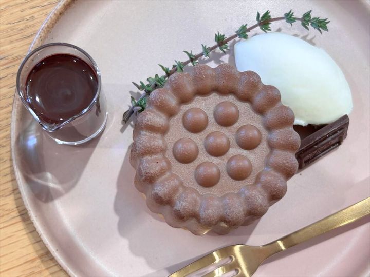 ビターなチョコレートソースも添えられているので、味変も可能です。