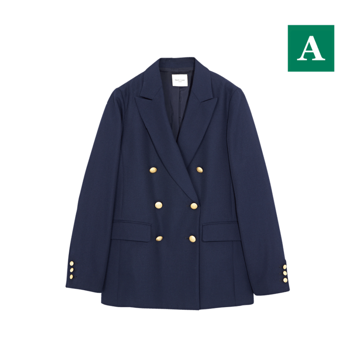 オーバー過ぎないちょうどいいシルエットに、ダブルの金ボタンがまさに王道の紺ブレ。どんなスタイルもきちんと感を演出できる頼もしい1着。ジャケット¥40,700(デミルクス ビームス/デミルクス ビームス 新宿)
