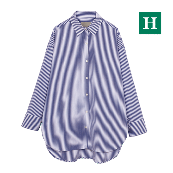 サイズ感、丈、色、ピッチ、どれを取ってもパーフェクトな、永遠に愛せるストライプシャツ。レイヤードや腰巻きなど、コーディネートを盛り上げるアクセントとしても重宝しそう。シャツ¥7,990(アンフィーロ)
