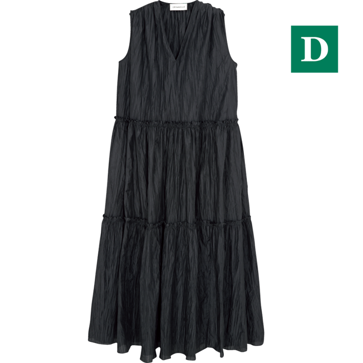 たっぷりのギャザーが 華やかな1枚。ワッシャー加工のタフタ素材を使用したドレスは1枚でも存在感抜群。ティアードの切り替えはラフな切りっぱなし仕様。デイリーにはもちろん特別なシーンにも。ドレス¥74,800(デパリエ/デパリエ 伊勢丹新宿店)