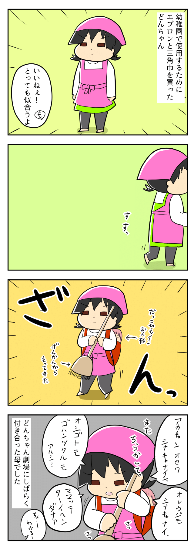 あはは!エプロンからママを連想したどんちゃん、ママのイメージはこんな感じなのですね(笑)でも・・・合ってる!共感しちゃいますね!