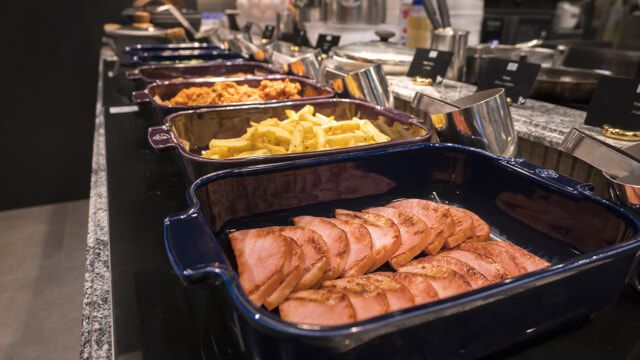 グリルされたハムやフライドポテト、春巻き、温かいオートミールなども並んでいました。