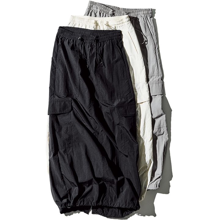 カーゴパンツ感覚で穿けるテックスカート。裾にはストッパー付きのゴム入りで、シルエットの変化を楽しめる秀逸デザイン。吸汗速乾・接触冷感機能付き。