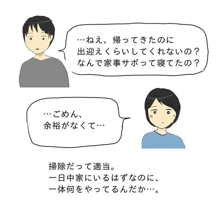 帝王切開で出産したばかりで家事を再開した妻に、夫は「家事をサボっている」と感じて不満を感じていました。