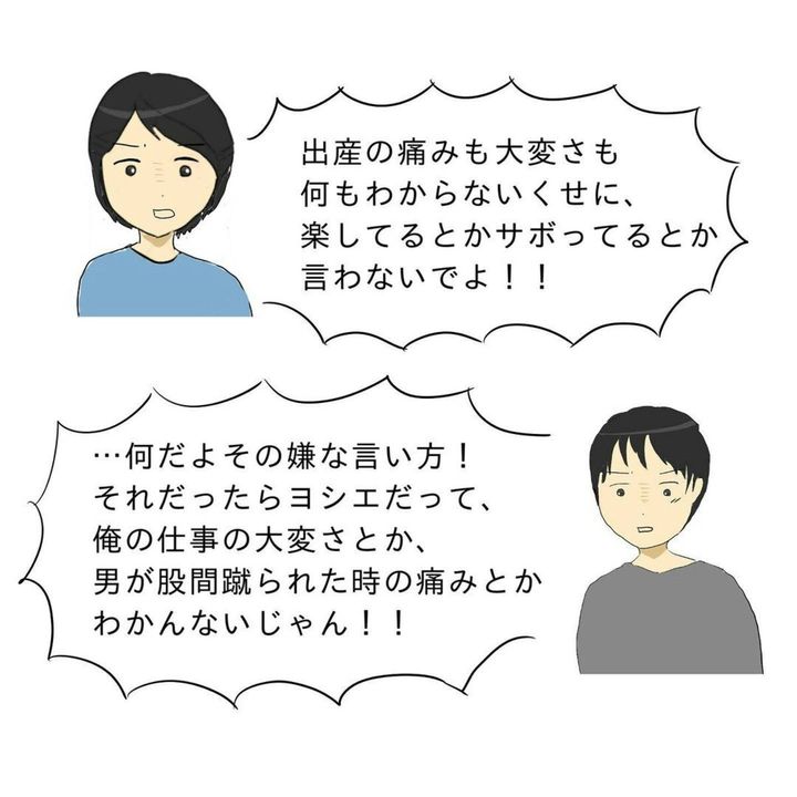 産後まもない妻を気遣うことすらできない夫には、産後の体の痛みを訴えたところで理解できるはずもありません。妻のヨシエは夫とまともに話し合うこともできず、モヤモヤしていたことでしょう。