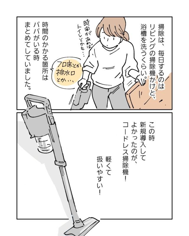 この時、新規導入して良かったのがコードレス掃除機だそう!