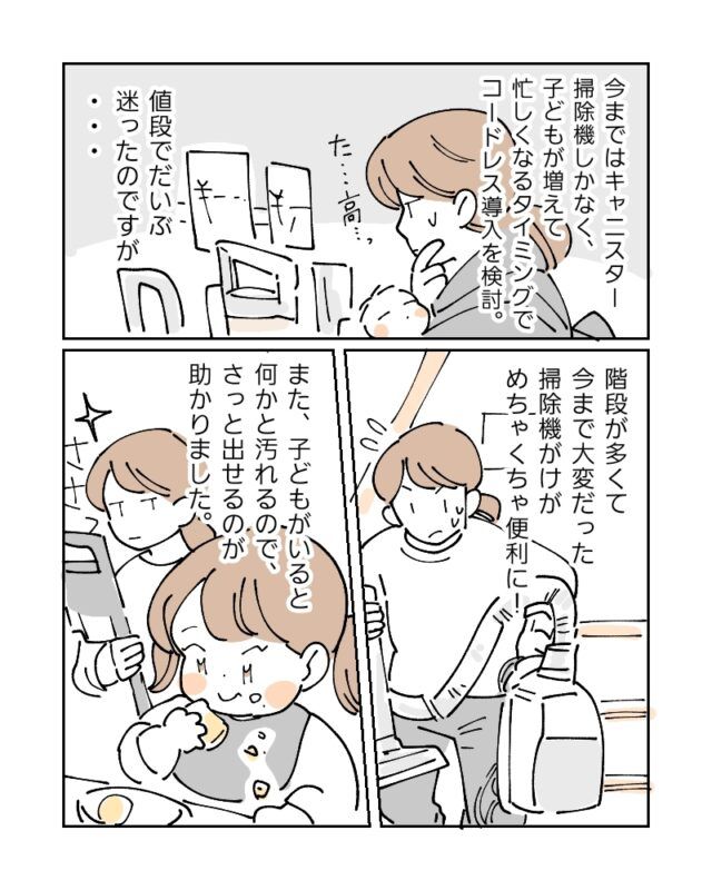今まではキャニスター掃除機しかなく、子どもが増えて忙しくなるタイミングでコードレス掃除機の導入を検討。
