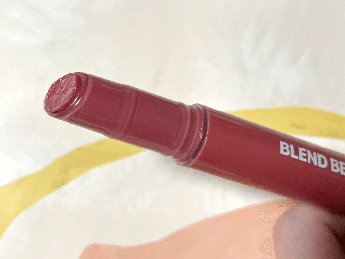 いちばん最初に使ったのが、「ブレンドベリー リップバルーン」の004おめざめヌーディピンク。プランプ・ツヤ・保湿・高発色・ティントの5つの効果が1本にまとまっています。唇につけると、スーッとするのが最初はびっくりしたのですが、リップクリームを塗っている感覚と同じで違和感はなし。保湿されている感覚もあり、ツヤっ!ぽてっ!とした唇に仕上がります。ペンシルのようにボタンを押すと中身が出てくるのも使いやすくてお気に入り。色持ちはあまり長くはない体感がありますが、唇が荒れにくかったのでリピ買い検討中のアイテムです。ラメ入りなのもかわいらしい!